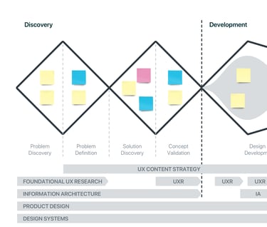 Our team of cross-discipline experts, use service design methods to identify the right problems and facilitate ingenious and innovative solutions that meet the needs of your business and your customers. We work with you and your users to understand goals and develop a service and product strategy that delivers key results and value-based outcomes.